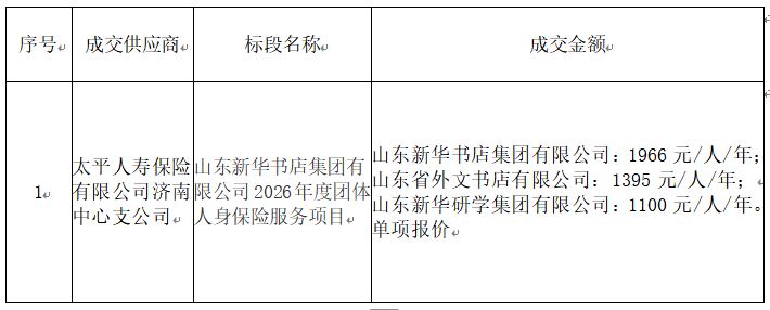 山东新华书店集团有限公司2026年度团体人身保险