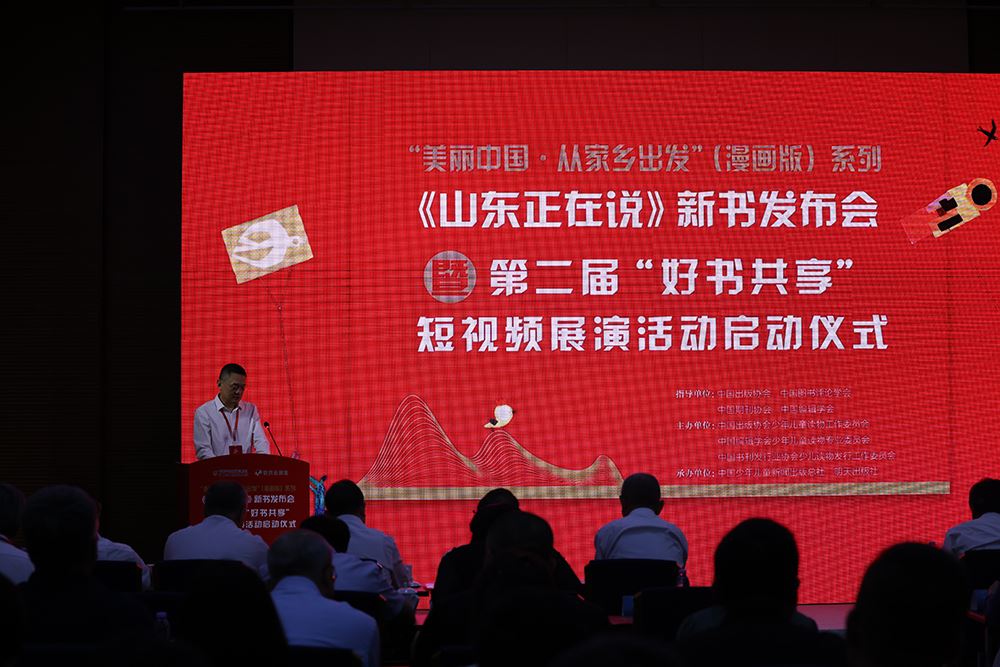 由中国出版协会、中国编辑学会指导,中国出版协会少年儿童读物工作委员会和中国编辑学会少年儿童读物专业委员会主办,中国少年儿童新闻出版总社和明天出版社共同承办的“美丽中国·从家乡出发(漫画版)”系列《山东正在说》新书发布会暨第二届“好书共享”短视频展演活动启动仪式在泉城济南召开。2024年7月27日上午,在第32届全国图书交易博览会及第四届少儿阅读节举办之际,由中国出版协会、中国编辑学会指导,中国出版协会少年儿童读物工作委员会和中国编辑学会少年儿童读物专业委员会主办,中国少年儿童新闻出版总社和明天出版社共同承办的“美丽中国·从家乡出发(漫画版)”系列《山东正在说》新书发布会暨第二届“好书共享”短视频展演活动启动仪式在泉城济南召开。活动由中国出版协会少年儿童读物工作委员会主任,中国少年儿童新闻出版总社有限公司党委书记、董事长郭峰和明天出版社社长李文波共同主持。来自指导单位、主办单位、承办单位的领导和嘉宾,全国50余家出版社代表,以及经销商代表、教育界代表、媒体记者出席了本次活动,以书为媒,以声传情,共同为中华人民共和国成立75周年献礼。